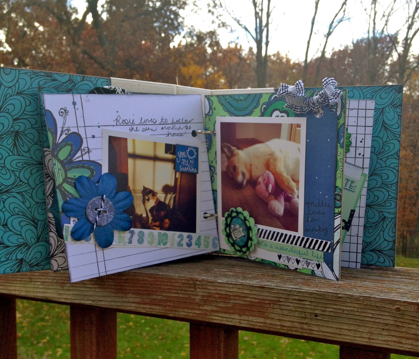 I used a favorite from Jillibean Soup for this one. The line is called "Cold Avocado Soup" and I LOVE it!! This is my third project from this line. The colors were perfect for the pictures I used. they were from Nationals, Katie's first year on the Iowa Dance Team. I also used some Thickers and some custom flair from "a flair for buttons"